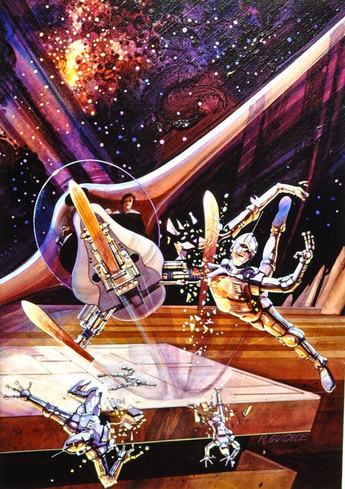 Every creative journey starts with inspiration—a spark that ignites the mind and compels the hands to create. For Libro Consiliorum, my collection of sci-fi and fantasy stories, that spark came from the work of visionary artists who painted the future long before we arrived. The images of distant worlds, massive space stations, and celestial wonders crafted by Robert McCall, Rick Guidice, Don Davis, Syd Mead, and Vincent Di Fate have shaped not only my stories but my entire approach to storytelling and design.
